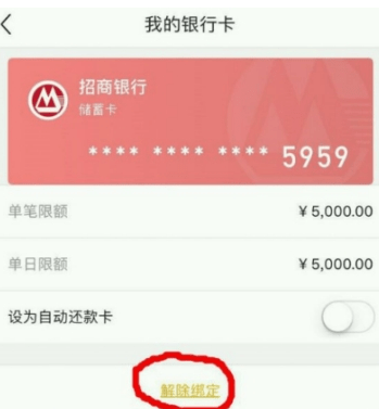 3、如此一来,进入银行卡详情页面后就可以直接在下方找到“解除绑定”的服务,点击并输入密码即可完成解绑!