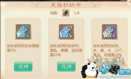 2、斩妖令拥有增加进魔王窟副本的三种抗性(增加BUFF)。