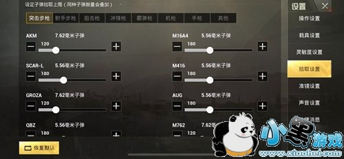子弹的拾取可以根据子弹类型进行分开设置,因此玩家可以根据自己的习惯来调整子弹拾取的数量。比如常用M416或者QBZ,就可以多拾取一些5.56MM子弹,上限可以设置到180。习惯使用AKM的玩家就可以把7.62子弹设置成180发。至于狙击枪的子弹设置就可以看什么类型,射手步枪可以准备120发子弹,栓动狙击枪准备50发就够用。