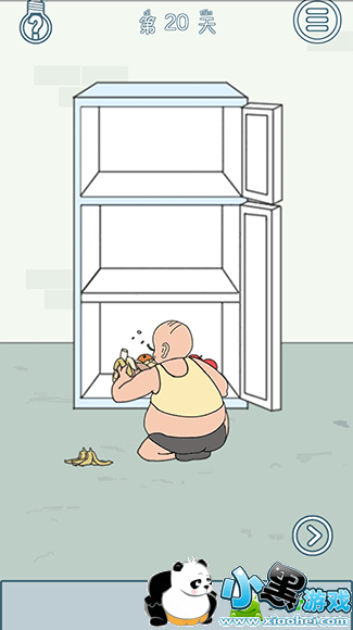 答案:我们只需要在第一页,开冰箱门,得到遥控器,第二页,换台换到都是菜的台,第一页,胖哥会去冰箱找吃的,拿到香蕉皮,第二页,香蕉皮放在桌子右下角钱的下边拿钱,我们就可以顺利通关。