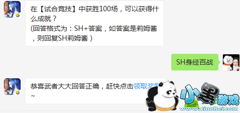 在试合竞技中获胜100场可以获得什么成就?今天的每日一题是在考验大家对于试合竞技的了解程度,一般在竞技场中已经获得100次胜利的玩家是知道答案的,但是还是有很多的玩家是不知道的,那今天每日一题的答案是什么呢?下面是小编整理的在试合竞技中获胜100场可以获得什么成就攻略,一起去看看吧!