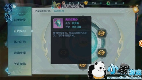 我们每天登录游戏一定时长就可以领取在线奖励,这些奖励中就包含了一张高级招募券。