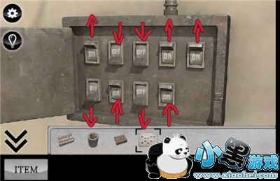 来到有三个灯的这面墙,环顾四周,记录下来亮着的灯的方位。