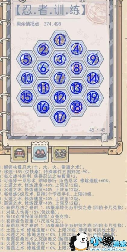 火遁之术:每级+10蜗牛攻击,每8段获得一个火之玉手箱