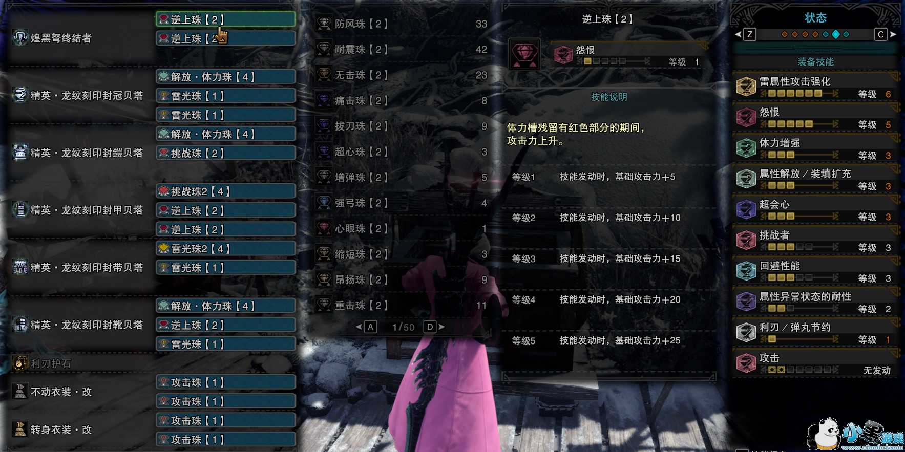 属性轻弩校服,基本没啥好说的,这里放的雷强珠只是作为模板,属强珠根据打的属性弹的不同自行替换。