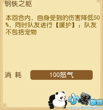 本回合内受到的伤害降低一半,并且能对所有队友进行援护,在这个回合,锤盾系的战士能够保护所有的队友,简直就是脆皮职业的良心队友啊,有无有。