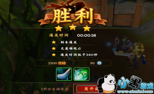 当玩家每完成一关卡,通过限定的时间内且无英雄死亡,就会获取相应的星级以及装备材。完成以后直接点击离开副本就能调转到第一章的副本页面,继续下一关的关卡,当你每关都能取得三颗星级过关