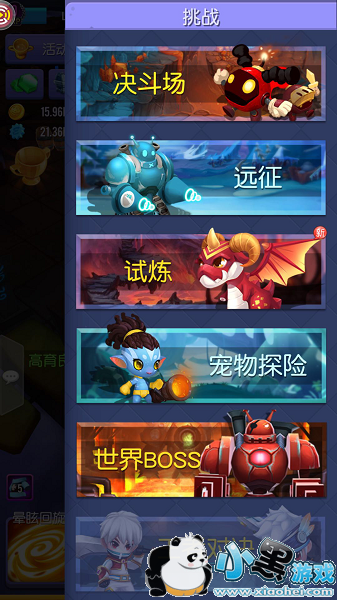 《幻想骑士团》有很多好玩的模式分别是:公会,决斗场,远征,试炼,宠物探险,世界BOSS,王者对决,亲密度,羽翼,好友。