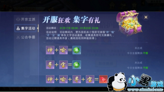 开服前七天,消灭小怪即可获得大量集字卡片,集齐一定数量卡片即可在集字有礼活动中兑换奖励: