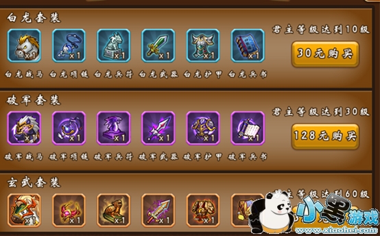 在其次就是装备,同样土豪和大佬们可以选择套装礼包