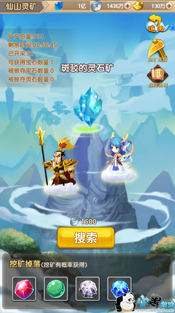 接下来要选择挖矿的时间,挖矿出产的物品只能在时间结束后才能收取,挖矿时间越长,获得的灵石和宝石数量也就越多。