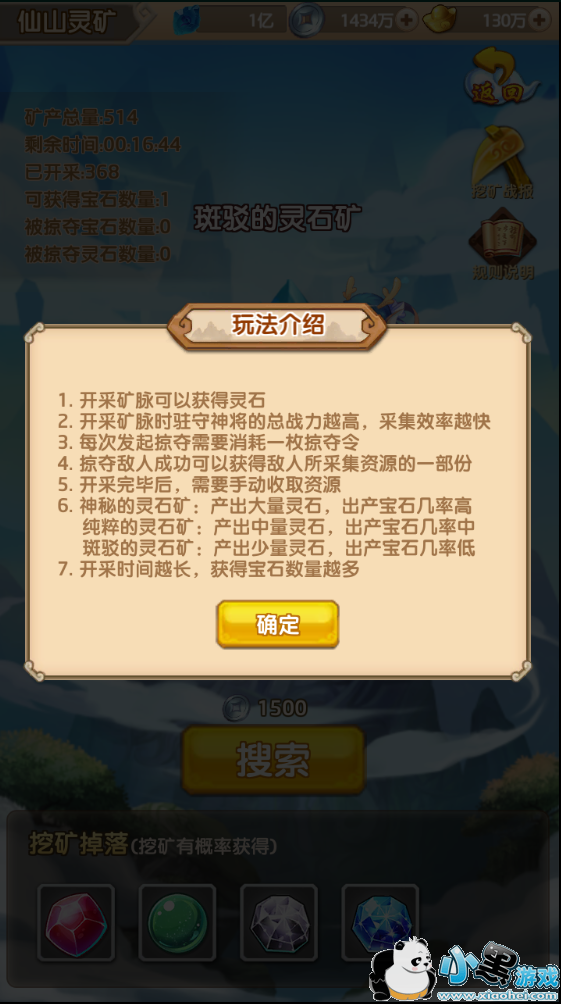 【挖矿掉落】:显示挖矿有几率掉落的灵石和宝石。