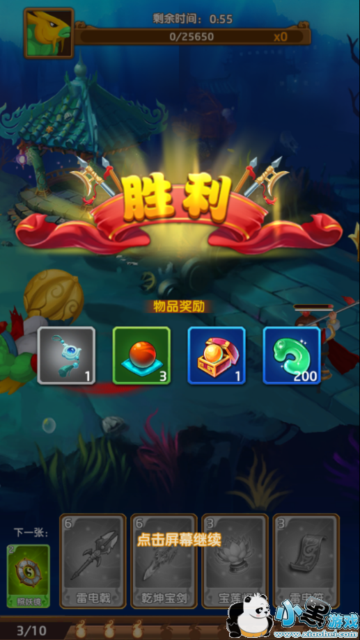 当消灭的小怪数量达到过关标准时,会自动进入下一关,界面中的轮盘会随消灭的小怪数量而转动,转到头就会进入下一关。每隔几个小关卡后,就会遇上一个大关卡,需要击败守关的妖王BOSS才能进入下一关。