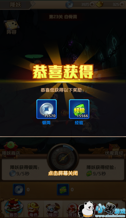 降妖的关卡数越高,挂机获得的银两和经验也会越多。队伍的战力越高,闯关的速度就越快。