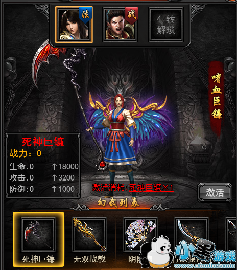 现有方天画戟、百鸟朝凤枪、青龙偃月刀、死神镰刀、无双战戟、阴阳扇等幻武。