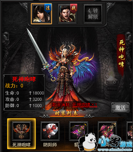 衣柜在角色界面里打开,放置了称号、幻武、时装、翅膀幻化功能。