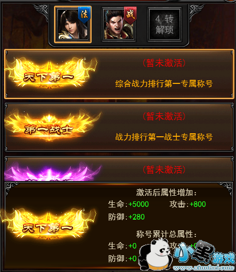 玩家可为三角色佩戴不同的称号,在气势上压人一等。
