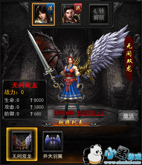 现有无间双龙、开天羽翼等翅膀。