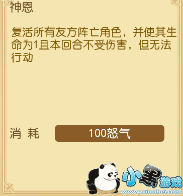 很明显,神恩肯定就是杖系牧师的大招了,消耗100怒气的大招一直都是很强势的技能。复活所有友方阵亡角色,并使其生命为1且本回合不受伤害,当然也无法行动。相信玩过回合制游戏的玩家都知道,基本上都会有一个技能或特技是群拉友方所有阵亡角色的,对吧?而魔力物语的杖系牧师的大招就是这个,别看生命为1就觉得不好,但拉起来的回合是不受伤害的哦,也就是保证这回合不会再倒下;当然,这回合也是不能出手的。