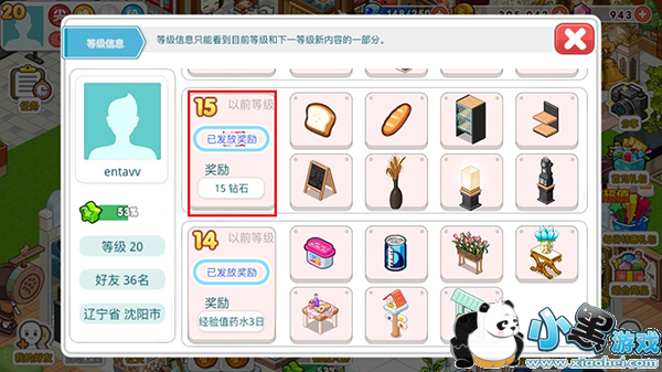 4、 升级奖励,每隔几级的升级奖励就会是15颗红宝石