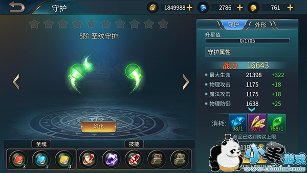 守护开启后会提升角色各项属性,并且还能对圣物进行幻化,打造个性的守护外形。