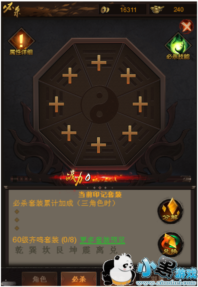 收集不同等级数量的套装,即可对必杀技能增加额外伤害加成。