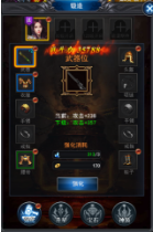玩家可通过点击主界面的“锻造”按钮,对装备进行升级强化。强化装备需要消耗强化石和金币。在获得强化石和有足够金币的情况下,系统会有提示的红色小点出现,玩家点击红点即可进行操作。