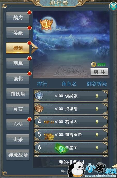 每个排行榜每天都可以膜拜大神来获得不菲的铜钱哦,当然如果你就是被人膜拜的大神,那就没有喽。
