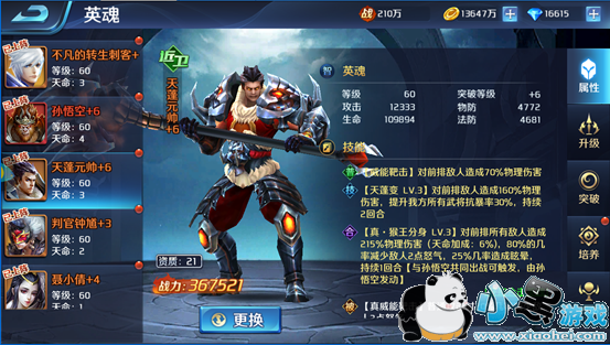 天蓬元帅虽然不是猪八戒的造型,但是从形象和铠甲外观等等可以看出其英雄的特性。具有人物特点的武器加上和孙悟空的合击技能,让这个角色的搭配更加完整有趣。