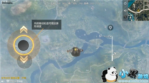 离开飞机之后,左侧虚拟摇杆往上推,然后转动屏幕保持角色的头部向下,快速俯冲。