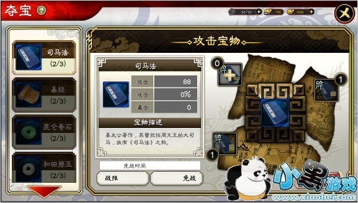 系统默认有3种低品质宝物供抢夺对应的碎片,除去系统默认的宝物外,其余宝物需拥有1块碎片才能对他人的同类宝物碎片进行抢夺,抢夺成功以后更有翻牌奖励(里面可是有好东西哦!)