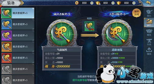 装备进阶是将装备从低级变为高级的唯一途径,装备进阶消耗进阶材料,100%成功,但是进阶的装备不能超过玩家等级,进阶只会进阶装备的等级,不会改变装备的强化、洗炼、品质、宝石