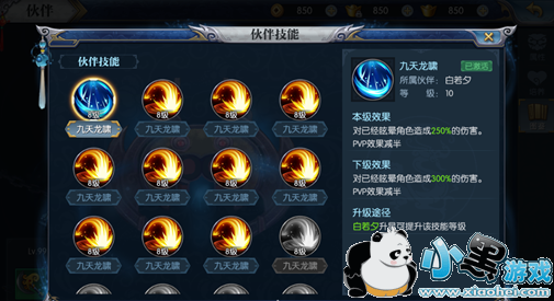 每个伙伴都存在1个独有的被动技能,拥有对应的伙伴后生效,并且可以升级
