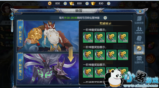仙盟神兽,在仙盟中这是一个重点玩法,仙盟中的玩家共同喂养使神兽成长,召唤神兽击杀之后可获得大量奖励