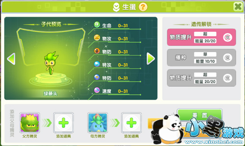 5、槽位解锁:花费一定的道具可以解锁生蛋槽位,可以孵出更多的子代精灵。