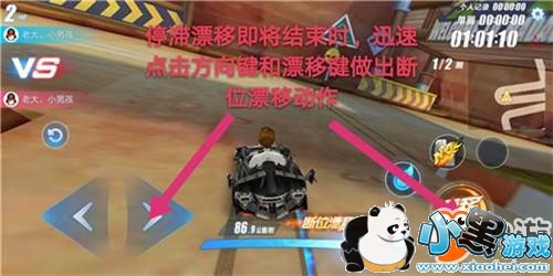 这个技巧在实战中还是比较常用的,以停滞漂移为主,断位漂移为辅使用。大家都知道,停滞漂移在操作时,赛车的车头朝向是不会改变的,同时还会降低漂移的时速。而这个技巧就是在停滞漂移快要结束时迅速做出一个断位漂移技巧,将赛车的车头拉正同时快速的滑出弯道。