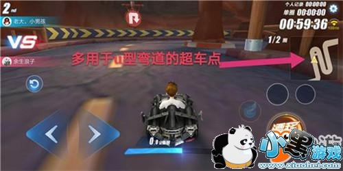 如上图所示,为了确保万无一失的通过这处超车点,需要使用停滞漂移技巧。在赛车处于漂移状态时,松开方向键和漂移键,点击刹车键即可完成停滞漂移动作。