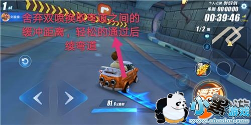 双喷在实战中属于基础性的技巧,所以没有特殊的赛道要求,只要做出了漂移动作都能够触发(甩尾漂移、断位漂移等高级漂移技巧都能够触发)。但两次小喷之间赛车是处于滑飘状态的,这段时间赛车很难控制。因此,在很多的连弯赛道中小伙伴们要学会适当的取舍,如上图所示,必要时可以直接放弃双喷,避免因为双喷造成操作难度过高,结果无法顺利通过后续弯道。