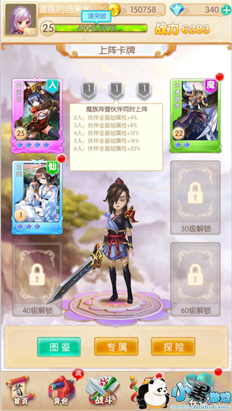 伙伴卡还有其特殊的情缘效果,比如携带一定数量同族的伙伴卡可以获得对应数量的属性加成,携带某些相互有联系的伙伴卡,可以触发情缘效果获得对应的属性加成。