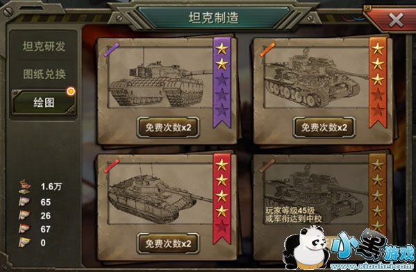 绘图是快速获得坦克的方式,但是为了游戏平衡,需要玩家到达一定等级才可以开放。