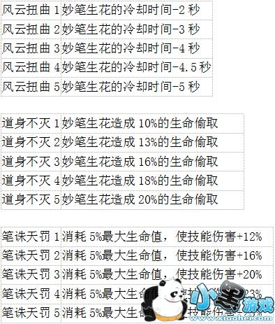 妙笔生花:妙笔丹青花开花谢,水墨在敌人脚下绽开,造成巨额伤害