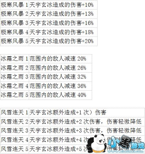 天宇玄冰:引导天降玄冰砸向范围内目标造成6次伤害,每次额外伤害