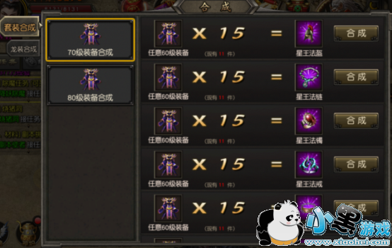 在游戏中点击装备便会看到装备合成按钮,打开后可以查看装备合成界面,如下图所示。