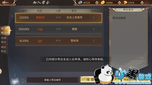加入《浩天奇缘2》的帮会有两种途径,第一种途径是直接加入其他玩家创建的帮会。玩家可以在帮会列表看到各个帮会的人数、宣言等情况,选择合适的帮会进行申请,在得到帮主的同意即可成功加入。