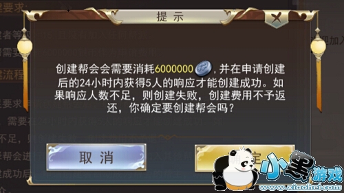 另一种加入《浩天奇缘2》帮会的途径,就是自己创建一个帮会。大于15级的玩家可以花费600万银币申请创建帮会,24小时内得到5人响应的话,即可成功创建了。