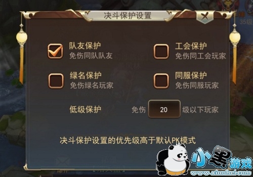 《浩天奇缘2》的决斗模式默认为和平模式,玩家可以自由切换。同时也可以通过决斗保护设置,避免攻击到同队玩家、同工会玩家、低级玩家等。