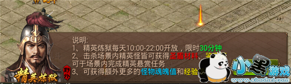 精英炼狱每天10:00-22:00开放,玩家可以通过盟城安全区内的对应NPC参与活动。每天在精英炼狱中的时间限制是30分钟,玩家需要抓紧时间刷怪已获得更多经验奖励。