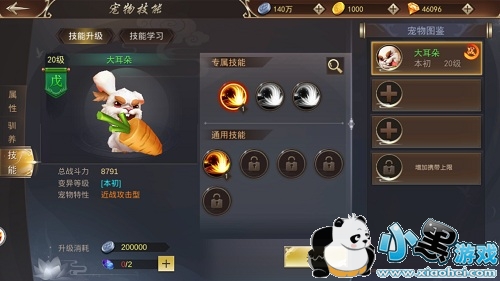 《浩天奇缘2》的宠物天生有3个专属技能,普通宠物还有5个通用技能,神兽则是7个。专属技能和通用技能都可以进行升级,从而提升技能的效果与威力。