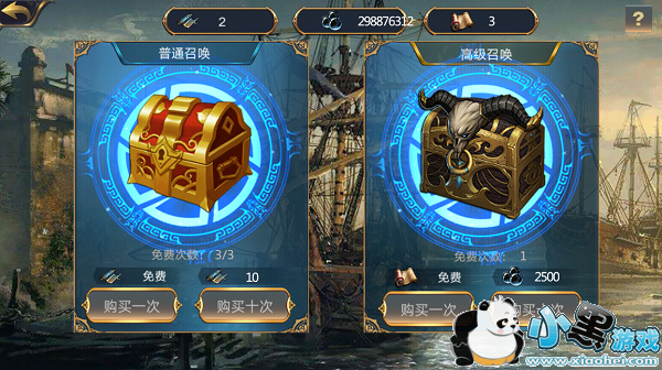 在造船厂之中,可以进行普通与高级两种召唤,普通召唤获得的船只品质较低,只有白色、绿色、蓝色以及紫色,并且需要消耗基础召唤卷轴,而高级召唤则最低可以出绿色船只,最高到紫色,需要消耗高级召唤卷轴与珍珠。