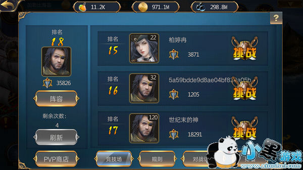 如果想要在顶端上再跨一步的话,竞技场中的战斗和消费是必不可免的,虽然这对很多玩家来说是后期的内容,但确是很重要又必不可免的。